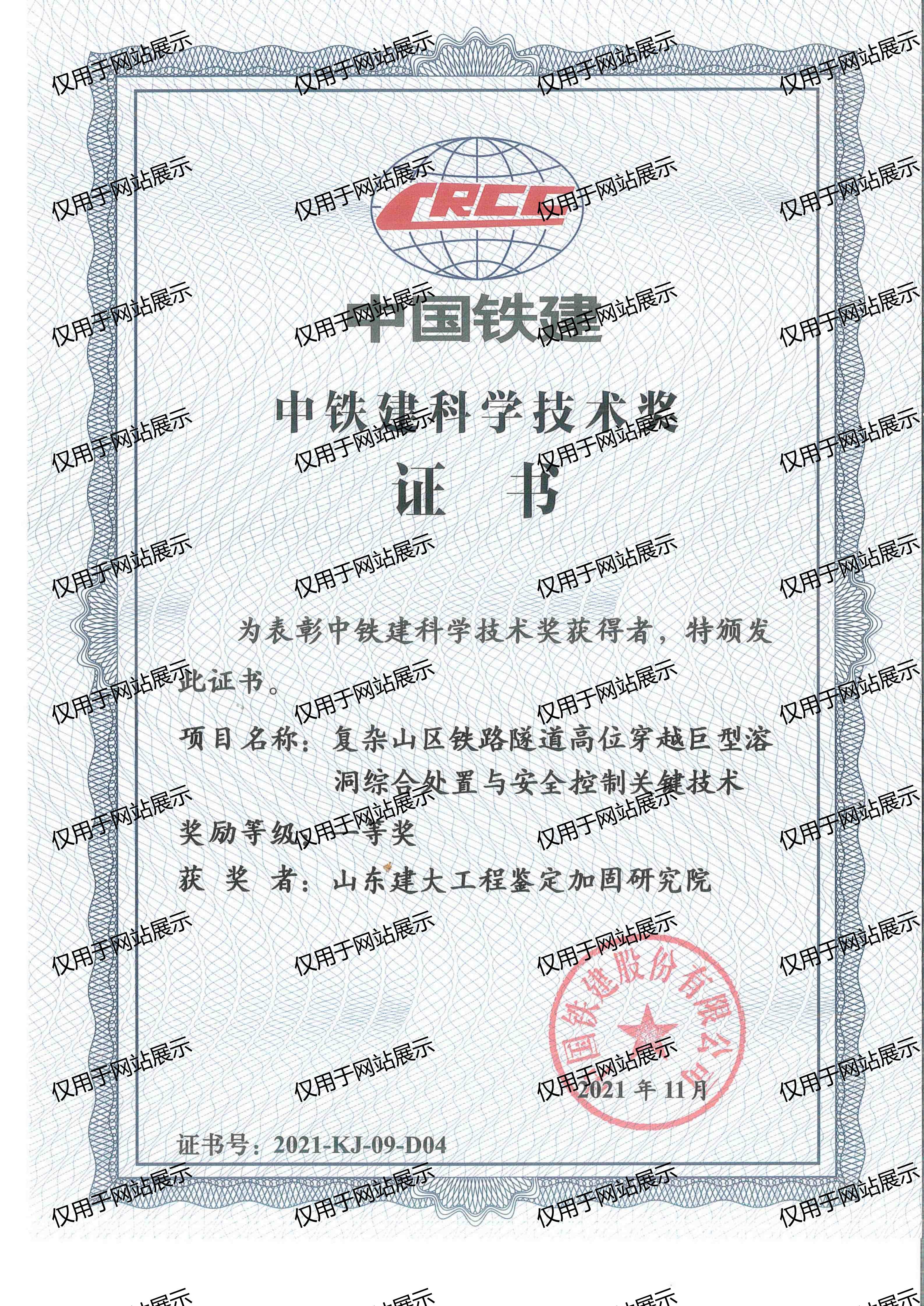 2021年中國(guó)鐵建科學(xué)技術(shù)獎(jiǎng)一等獎(jiǎng)