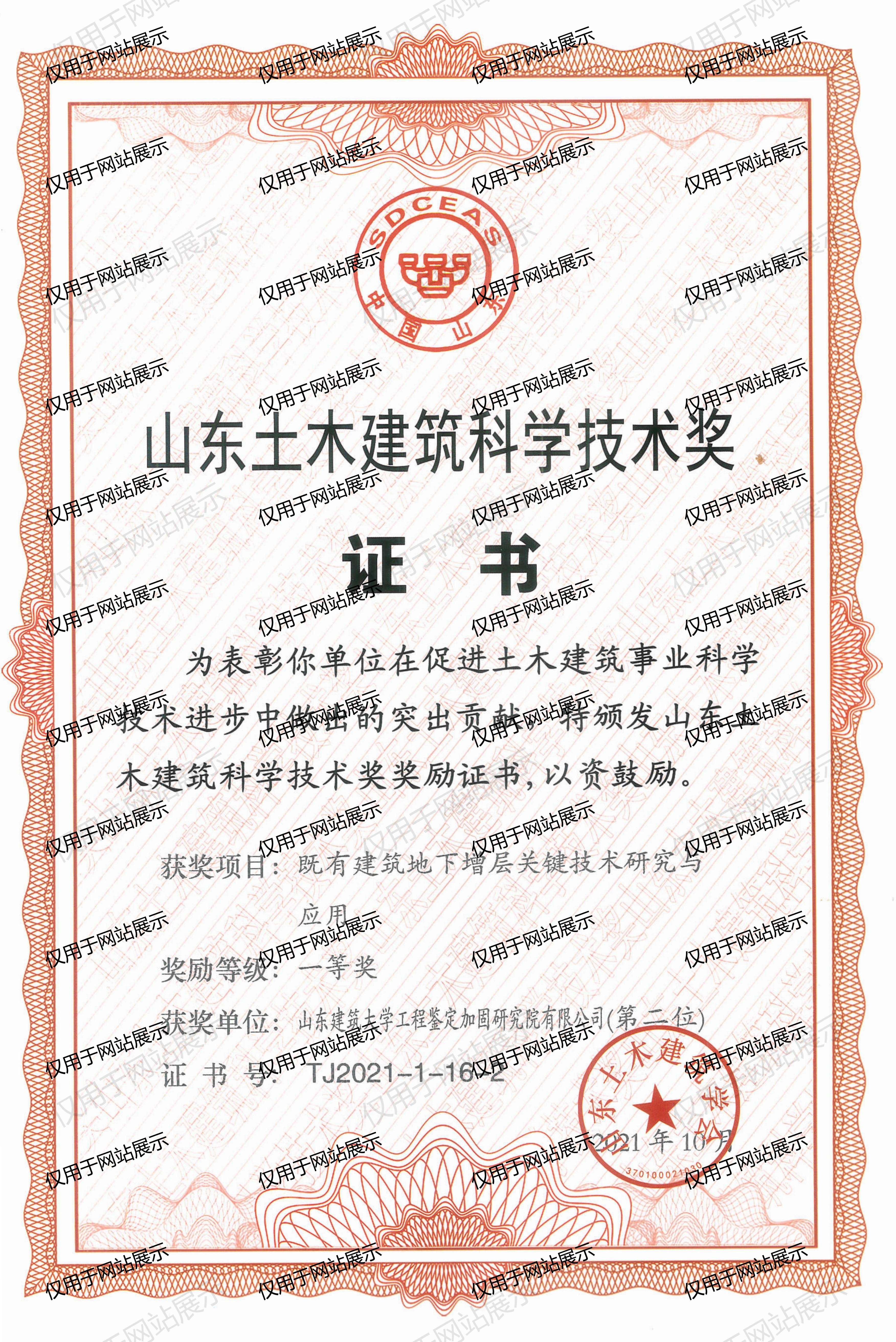 2021年山東土木建筑科學(xué)技術(shù)獎(jiǎng)一等獎(jiǎng)