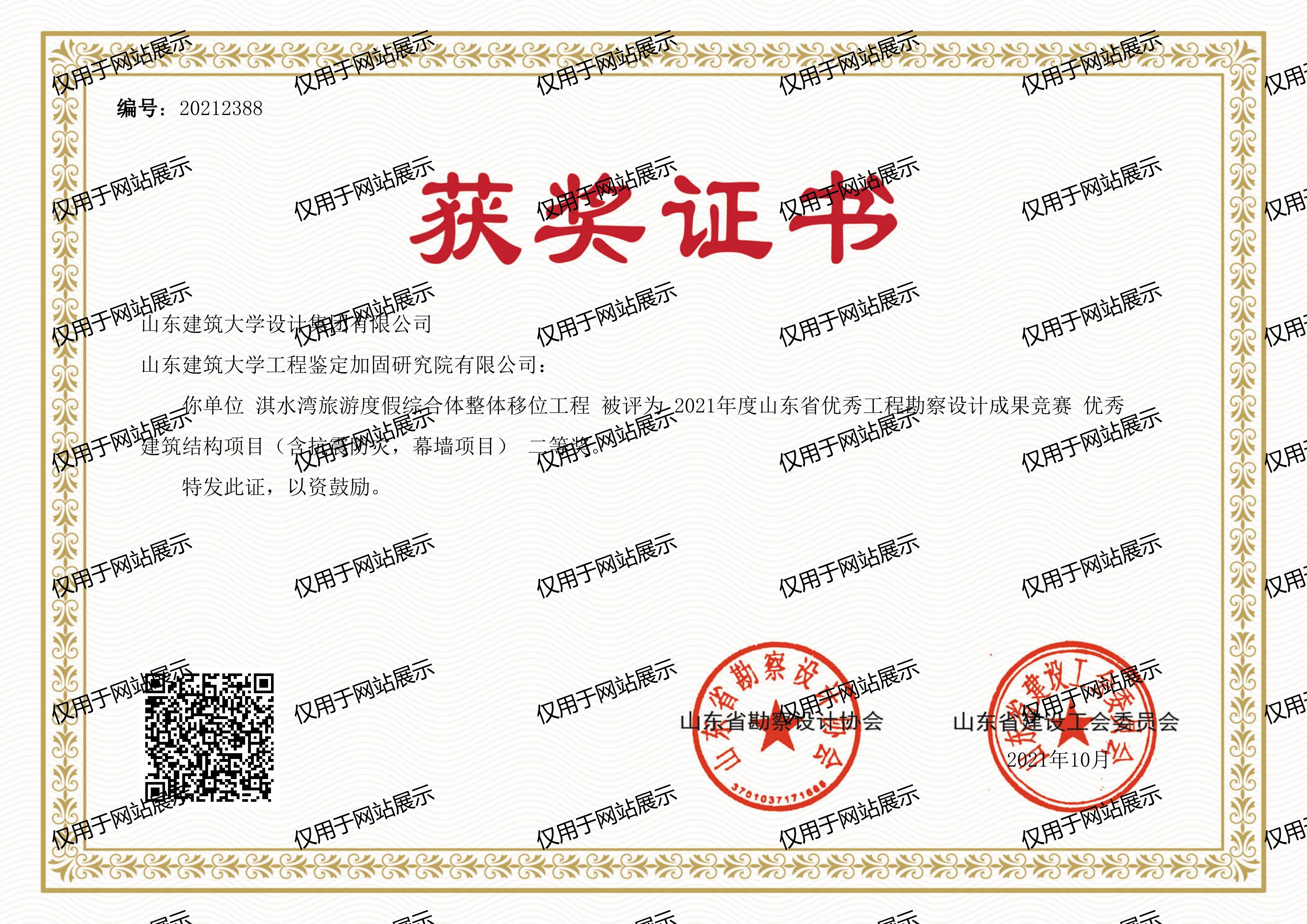 2021年度山東省優(yōu)秀工程勘察設(shè)計(jì)成果競(jìng)賽優(yōu)秀建筑結(jié)構(gòu)項(xiàng)目(含抗震防災(zāi),幕墻項(xiàng)目)二等獎(jiǎng)