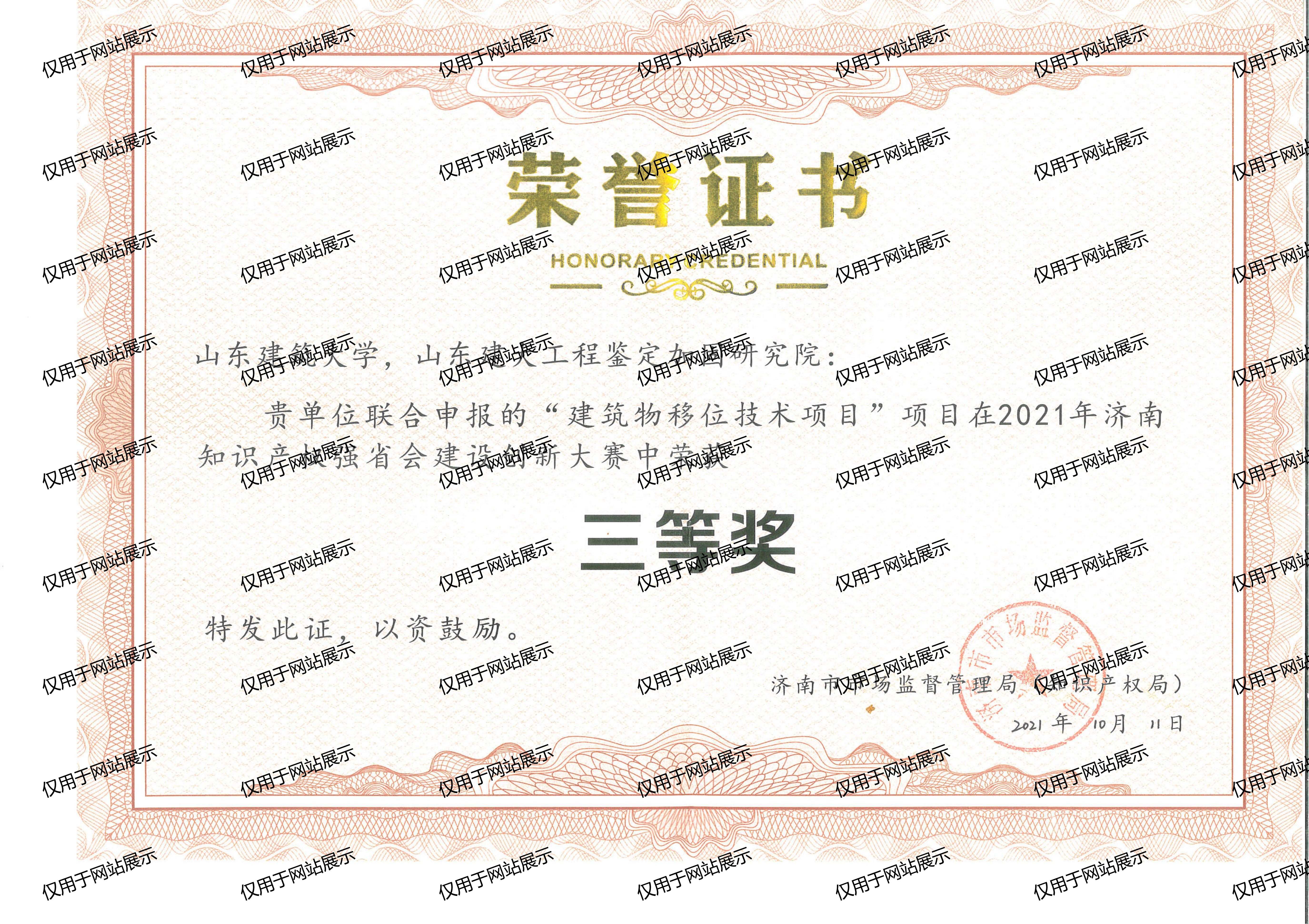 2021年濟(jì)南知識(shí)產(chǎn)權(quán)強(qiáng)省會(huì)建設(shè)創(chuàng)新大賽三等獎(jiǎng)