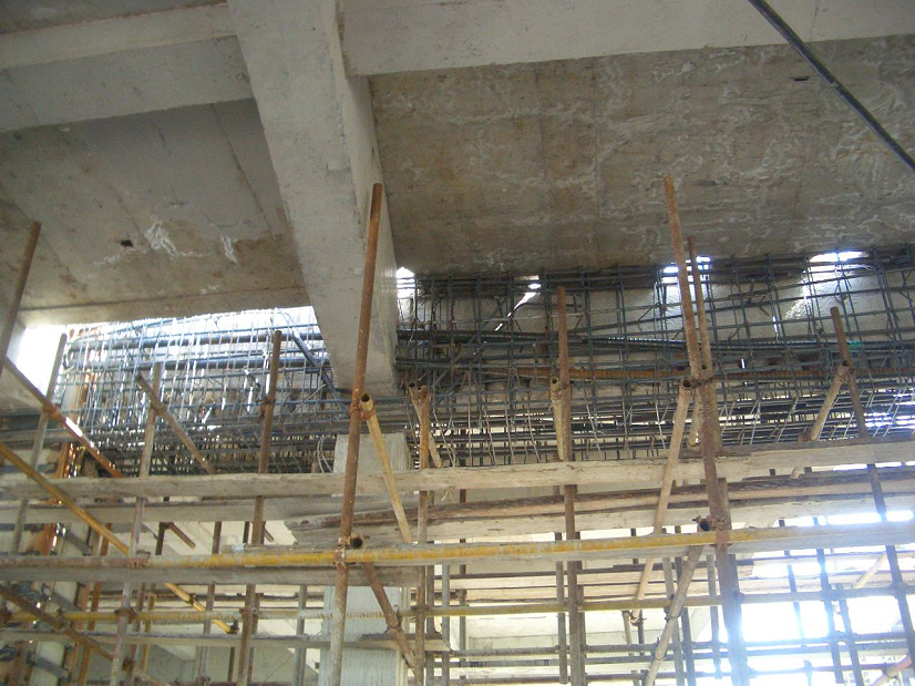 青島奧帆賽場31號東西地塊商業(yè)中心,地下二層,地上三層(局部四層),框架結(jié)構(gòu),由于商業(yè)布局改變,拆除1~2層共六棵框架柱,拆除后框架梁跨度18米。采用有粘結(jié)預(yù)應(yīng)力加固原有框架梁,我單位設(shè)計(jì)施工。