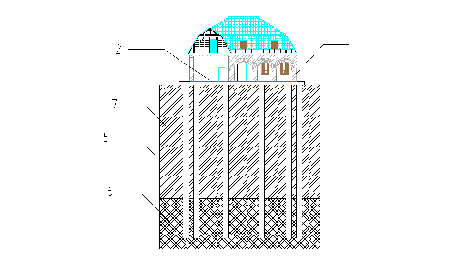濟(jì)南皮膚病醫(yī)院位于濟(jì)南市中山公園東老商埠一期地塊內(nèi),歷時百年,為仿德式歷史風(fēng)貌建筑。該建筑物為單層帶局部地下室的砌體結(jié)構(gòu),建筑面積約165.08平方米,其南立面見圖8。山東融匯建設(shè)開發(fā)有限公司在對該地塊開發(fā)的同時,本著保護(hù)文物傳承文化的目的,擬對該建筑原址保護(hù),并在其下方增設(shè)三層地下停車場。