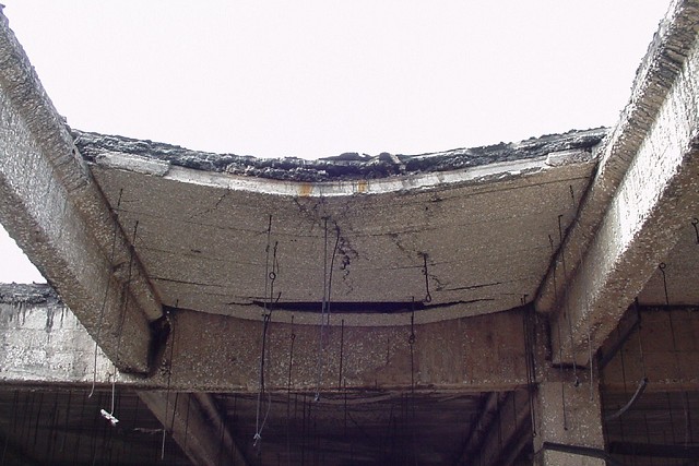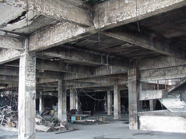 山東電子大廈為5層框架結(jié)構(gòu)建筑物,于2000年發(fā)生火災,建筑物損毀嚴重,我所通過對其鑒定及加固設計,為消防部門分析失火原因、判定災后損失提供依據(jù)。